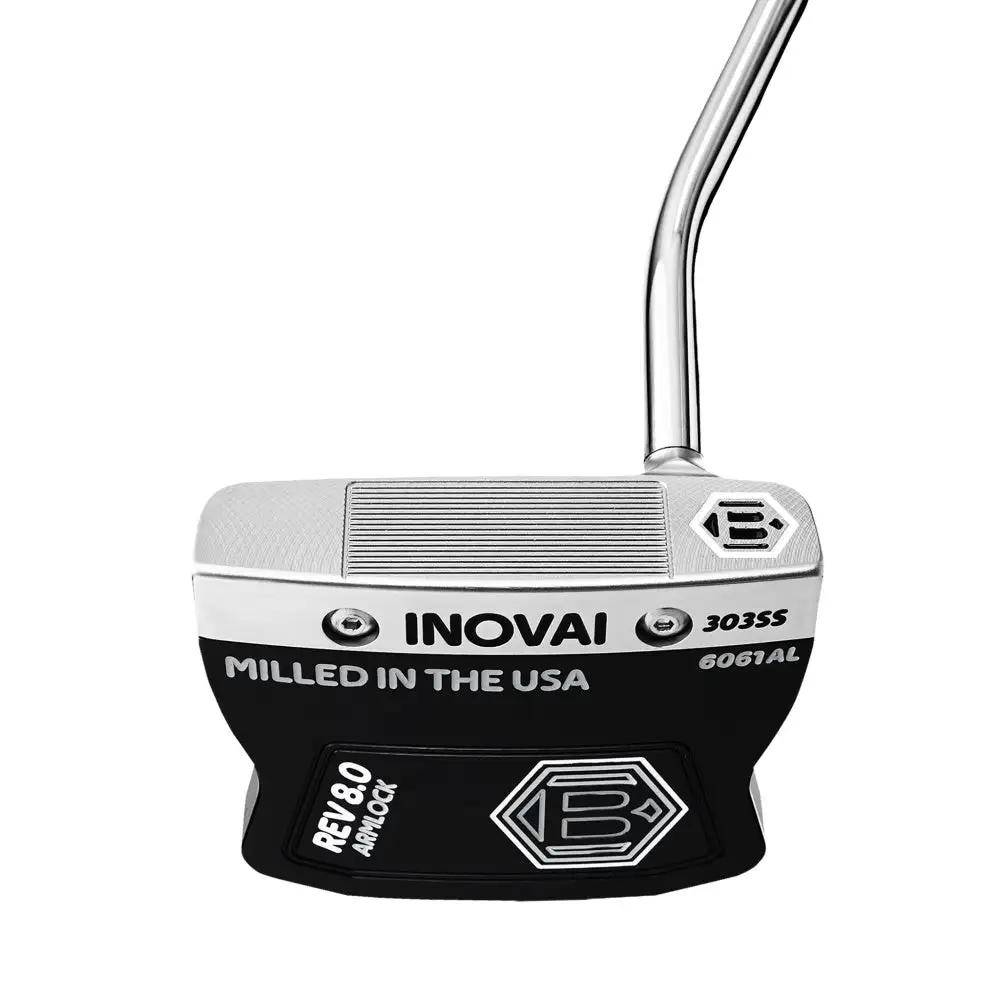 The all-new INOVAI 8.0 was designed and engineered by Sam Bettinardi to instill maximum confidence and forgiveness while putting. The 8.0 was created with a 303 Stainless Steel front piece for a solid feel at impact, and a Military Grade 6061 Aluminum body that was designed with defined wings that offer more stability and higher M.O.I. numbers. The Armlock technique gives golfers more confidence on short putts and consistency on long putts by bracing the 17” grip along the left forearm. With minimal toe hang, one shaft of offset, and a 400 gram head, it is the perfect mallet for players with a straight-back, straight-through putting stroke, looking to try the PGA Tour proven method.