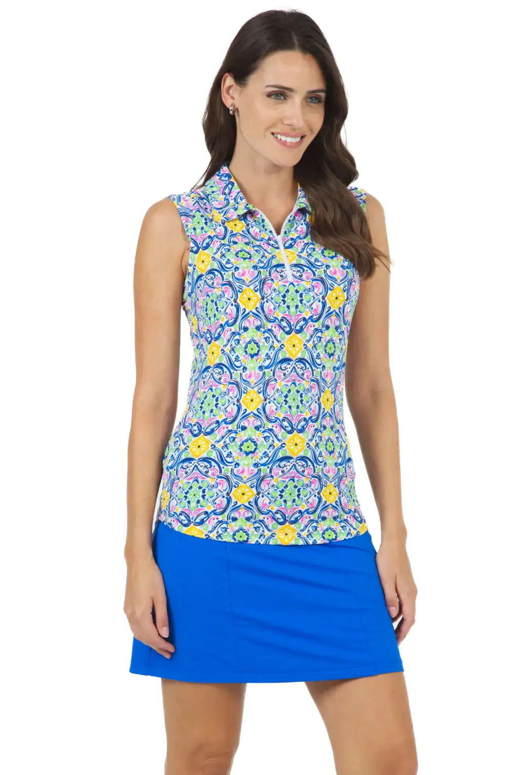 Our Sleeveless Polo features our patented IceFil� technology fabric. It works by converting sweat to refrigerant; cooling your skin 3 to 5 degrees, allowing you to be cool, comfortable, and dry on the hottest humid days. This garment also has built-in UPF 50 sun protection, moisture-wicking, and anti-microbial properties. Wear the Sleeveless Polo to all athleisure activities!