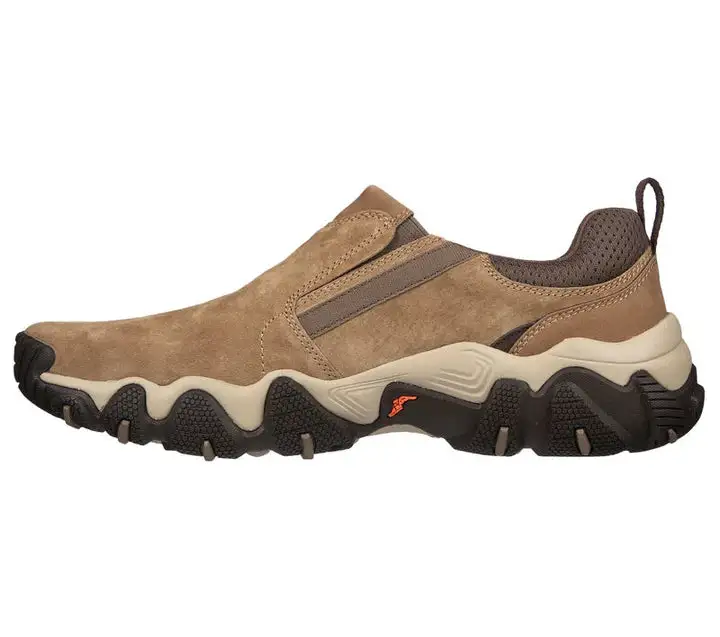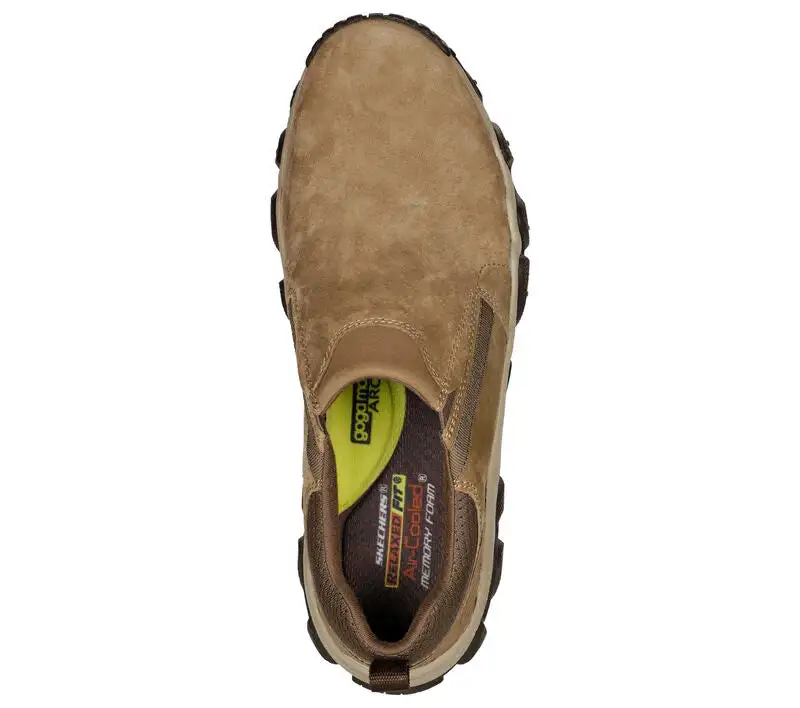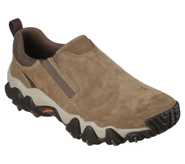Explore the great outdoors in classic comfort with Skechers Relaxed Fit: Xander – Hoyver. This laceless outdoor trail design features a pig suede upper with a Skechers Air-Cooled Memory Foam insole, Goga Mat Arch cushioning for added support and a durable Goodyear Rubber Outsole.